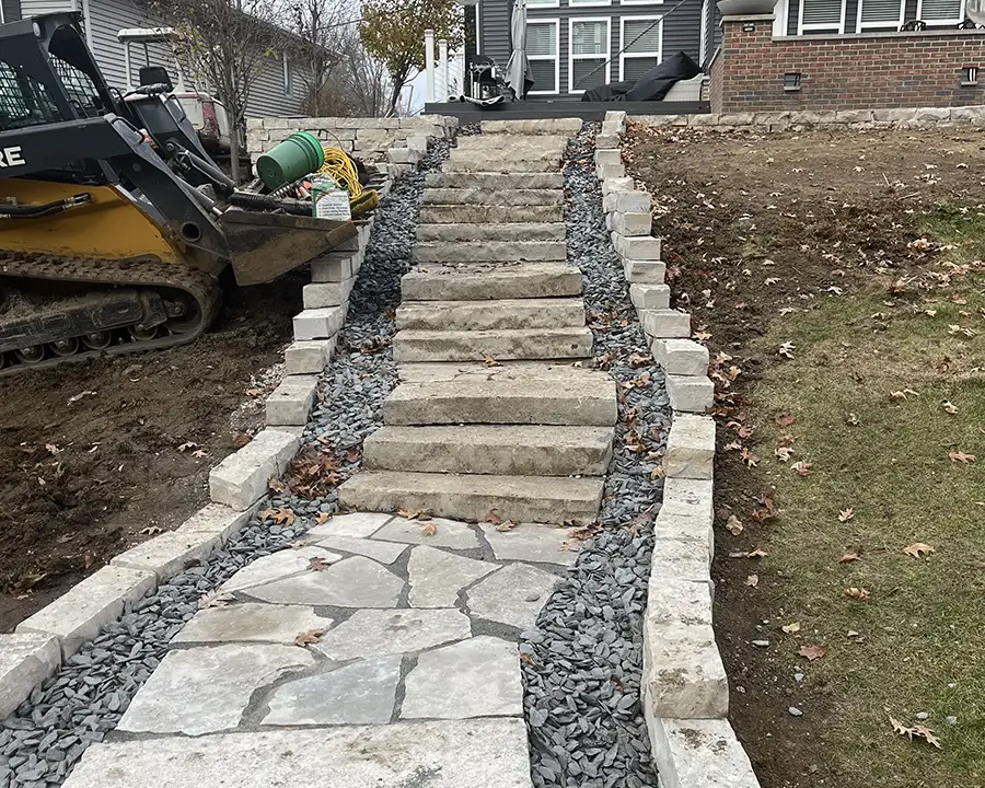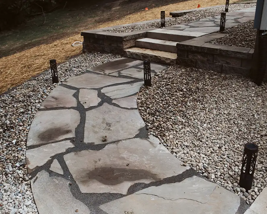 Walkways improve navigation and enhance the appearance of your property. We design paths using stone, pavers, brick, or stepping materials, blending them seamlessly with your landscape. Proper grading ensures drainage and a smooth, safe walking surface throughout your yard.